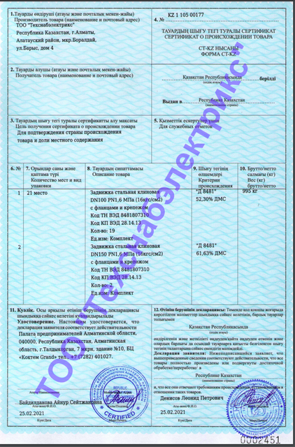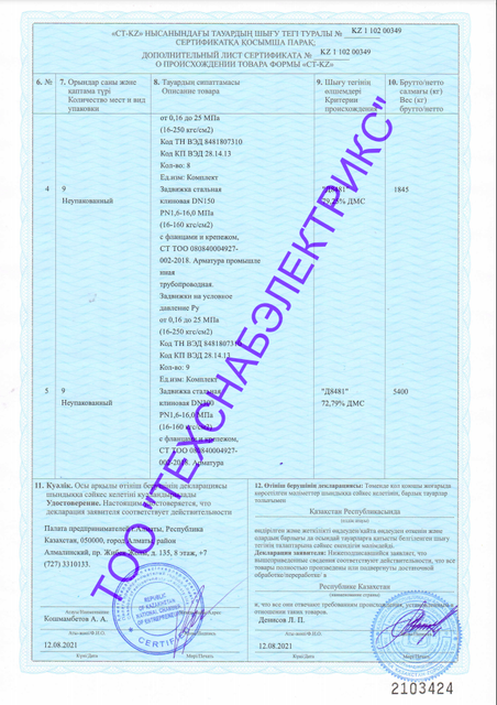 Поставляем запорную и трубопроводную арматуру Техснабэлектрикс существует на рынке с 2002 года как поставщик. Свое производство мы начали в 2008 году. За это время мы смогли добиться больших успехов и сегодня являемся одним из лидеров в своей сфере деятельности. На нашем сайте представлен большой ассортимент качественной арматуры. Перейти в каталог Качественная трубопроводная арматура от производителя Трубопроводная арматура является неотъемлемой частью инженерно-технических систем. Именно поэтому, от ее качества напрямую зависит эффективность регулирования и изменения параметров этих систем. В связи с этим, при выборе и покупке запорной трубопроводной арматуры, следует выбирать надежного и проверенного производителя. Важным фактором при выборе является наличие у производителя: сертификатов качества; сертификатов соответствия; гарантия на товар; наличие положительных отзывов от покупателей. Компания "Техснабэлектрикс" в Алматы, является надежным производителем запорной и трубопроводной арматуры. Наша компания с 2008 года занимает лидирующие позиции в производстве и продаже трубопроводной арматуры по всему Казахстану. Мы предлагаем своим клиентам большой и качественный выбор запорной арматуры, которую можно купить по доступной цене с доставкой по всей стране. Вся продукция представленная в каталоге нашего интернет-магазина Kpfcs.kz соотвествует всем ГОСТ стандартам и успешно используется во многих инженерно-технических системах, гарантируя их правильную и эффективную работу. На сайте компании Вы можете купить или оформить заказ на покупку: фланцевые задвижки; дисковые затворы и межфланцевые клапаны; краны шаровые; стальные переходы труб; отводы; тройники стальные; плоские и воротниковые фланцы; грязевики тепловых пунктов. Вся запорная и трубопроводная арматура есть в наличии, под заказ по выгодной цене, так как мы являемся производителем и не имеем наценок. Почему наша арматура пользуется большим спросом? Большой выбор У нас вы найдете большой выбор приспособления для трубопроводов. Он постоянно пополняется новыми наименованиями. Превосходное качество Мы гарантируем высокое качество всех товаров трубопроводной и запорной арматуры. На заводе тщательно отслеживаются все этапы производства. Выгодные цены На всю трубопроводную арматуру мы устанавливаем приемлемые цены. Длительная эксплуатация Долговечность наших изделий для трубопроводов доказана временем. Мы уверены в своей продукции Доставка и оплата Преимущества компании Техснабэлектрикс Профессиональный и индивидуальный подход ко всем клиентам Удобные способы оплаты заказа Отличный уровень сервиса и оперативная обработка всех заказов Доставка осуществляется в любой населенный пункт Казахстана Консультации по всем вопросам, связанным с приспособлениями Удобный каталог, в котором вы легко найдете все необходимые изделия Наши контакты Как мы работаем? Заказ оформляется на сайте или по телефону. Происходит консультация с менеджером На выбор клиенту предлагаются варианты платежей Мы доставляем заказ по указанному адресу Сотрудничество с нашей компанией всегда будет выгодным для клиентов В нашем каталоге представлена надежная трубопроводная и запорная арматура, которая была востребована во все времена. Специалисты компании всегда следят за 